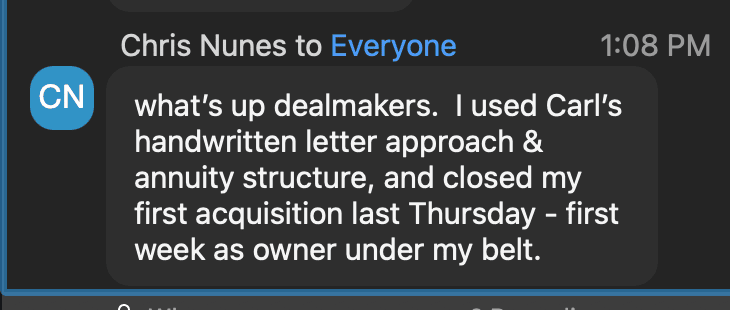 © Dealmaker Wealth Society, LLC (“Dealmaker Wealth Society,” “DWS” or “DWS”) produces, markets, sells, and distributes an online course on how to buy small businesses using M&A strategies like a Leveraged Buyout among other strategies. DWS is strictly a training business focused on business building, and entrepreneurship.